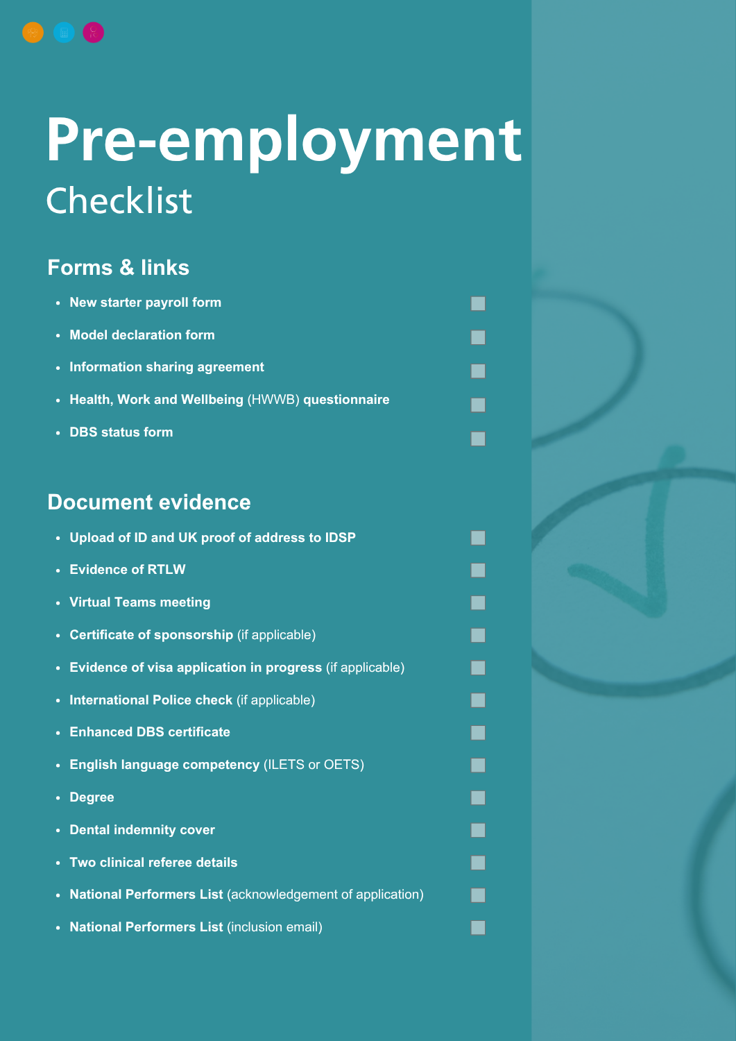 Take a look at our DFT pre-employment checklist for more information on all of the documents we require.